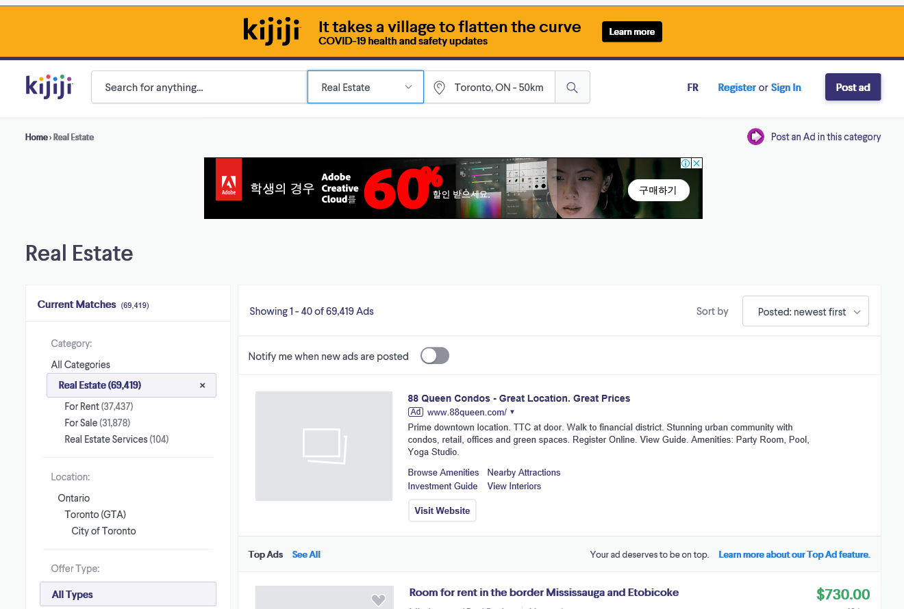 캐나다에서 집 구할 때 웹싸이트 Kijiji(키지지)카테고리 없음 2020. 6. 2. 11:32